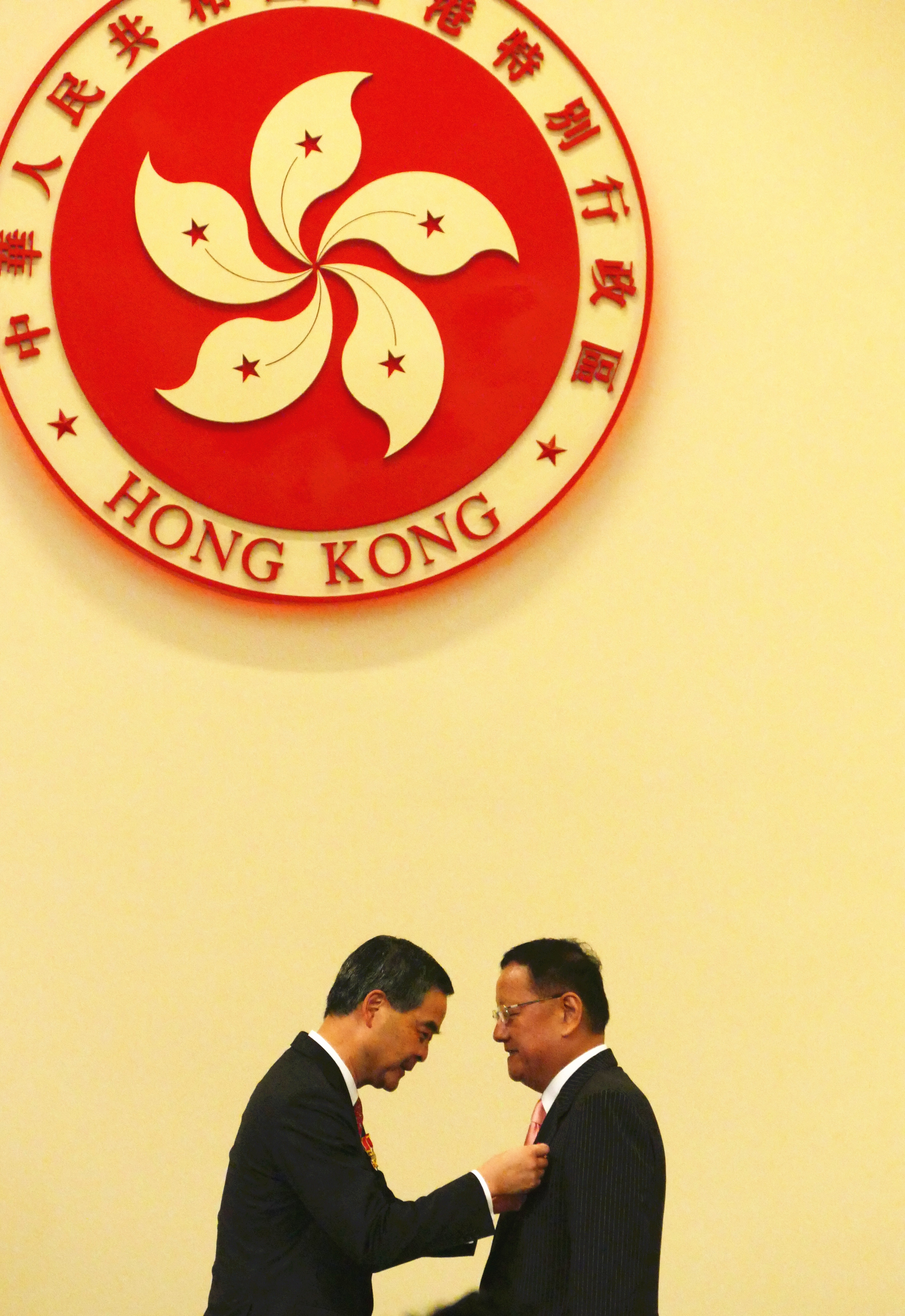 香港特别行政区行政长官梁振英向刘长乐颁授金紫荆星章