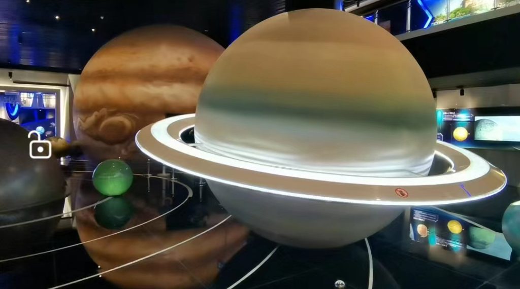 在平塘门国际天文体验馆,媒体老总们很有兴趣的穿越时空隧道,进入感观体验。那些悬挂在天空闪烁着光芒的八大行星、引发着媒体老总们奇思幻想。宇宙到底有多大?人类探索银河系的历程还有多遥远?是否有外星人?这些问题让人着迷。