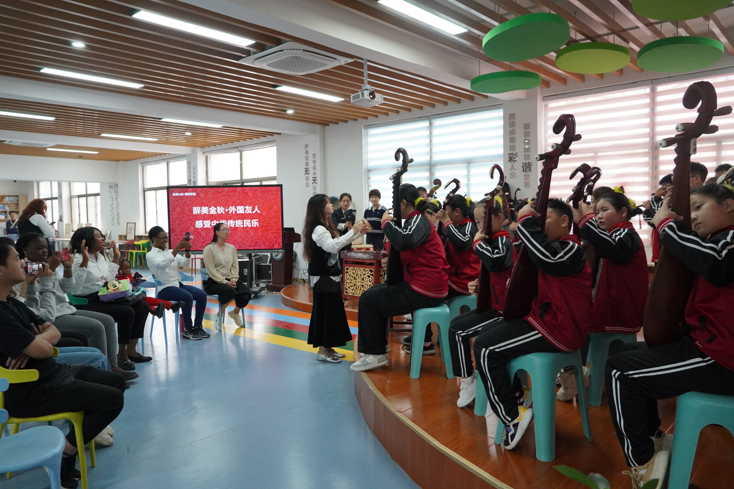 最美金秋,天高气爽。10月13日,单县县委宣传部组织在当地生活、工作的外国友人在单县实验小学开启了一场中华传统文化之旅,来自加纳、牙买加等国家的外国友人在书香氤氲的氛围中,一起欣赏民乐团师生带来的民乐演奏,一起欣赏书法中蕴籍的飘逸之美,在中华传统国画作品《金色硕果》中感受金秋的丰收之美。